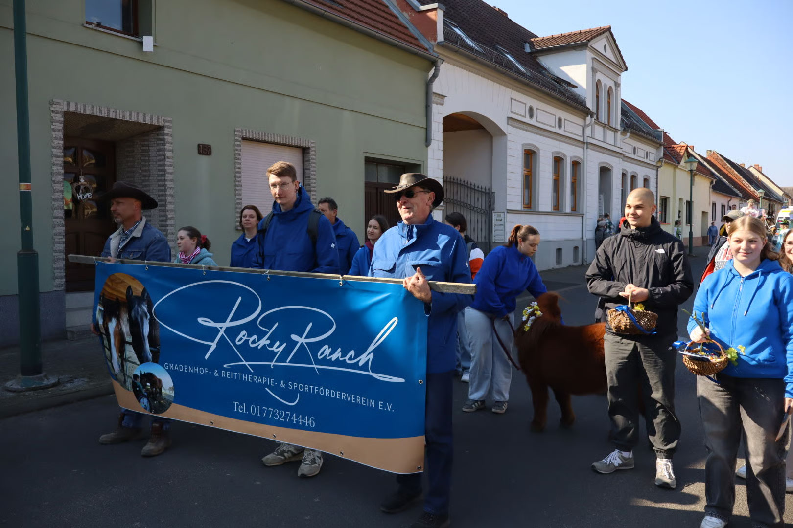 Dieses Jahr war unser Verein erstmals Teil des Wörlitzer Frühlingserwachens. Mit vielen Vereinsmitgliedern und den Ponys Hippie und Merle repräsentierten wir den Verein beim jährlichen Festumzug durch die Wörlitzer Innenstadt.